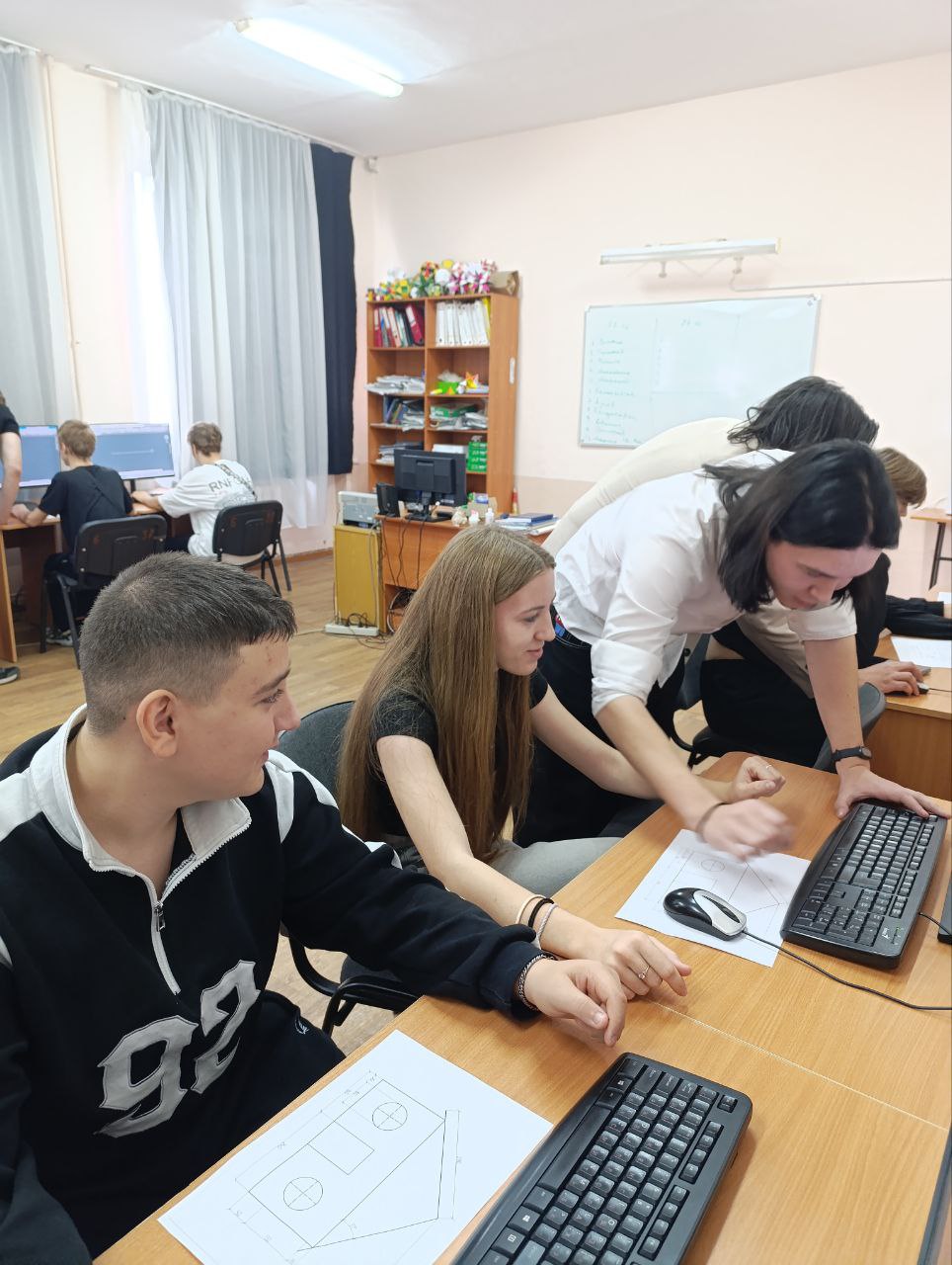 Цель профпробы: научить создавать чертежи в системе автоматизированного проектирования AutoCAD — рабочем инструменте дорожника-строителя. Участники профориентационного мероприятия под руководством педагога-наставника и студентов 3 курса создали свои первые чертежи в AutoCAD. Они распечатали результаты; момент был запечатлен на совместном фото с первыми чертежами, выполненными в системе автоматизированного проектирования!