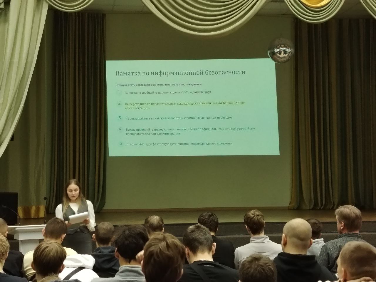 В рамках мероприятия под названием "Информационная безопасность. Мошенничество в сети" будущие специалисты получили ценные знания о том, как защитить себя от онлайн-угроз. Эта тема выбрана не случайно, ведь в современном мире умение распознавать и избегать мошеннических схем в интернете становится одним из ключевых навыков для каждого.