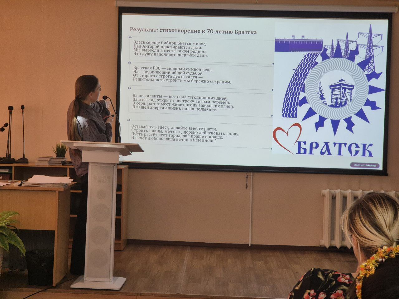 — Крюкова А.П. показала, как с помощью нейросети можно создать стихотворение и текст песни к 70-летию города Братска, обращённые к молодёжи, а затем озвучить их в платформе Suno.com