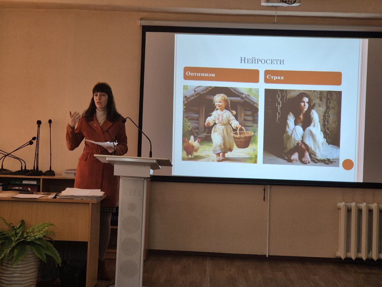 - Гарбузова М.В. от цикловой комиссии наземного транспорта представила визуализацию деятельности комиссии — оживлённые картинки и новогоднее видео, созданное с помощью ИИ.